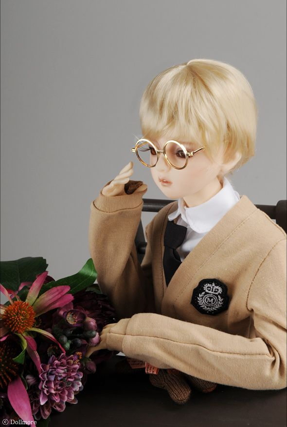 【60cm】 DOLL MORE / SD - Round Steel Lensless Frames Glasses (Gold)