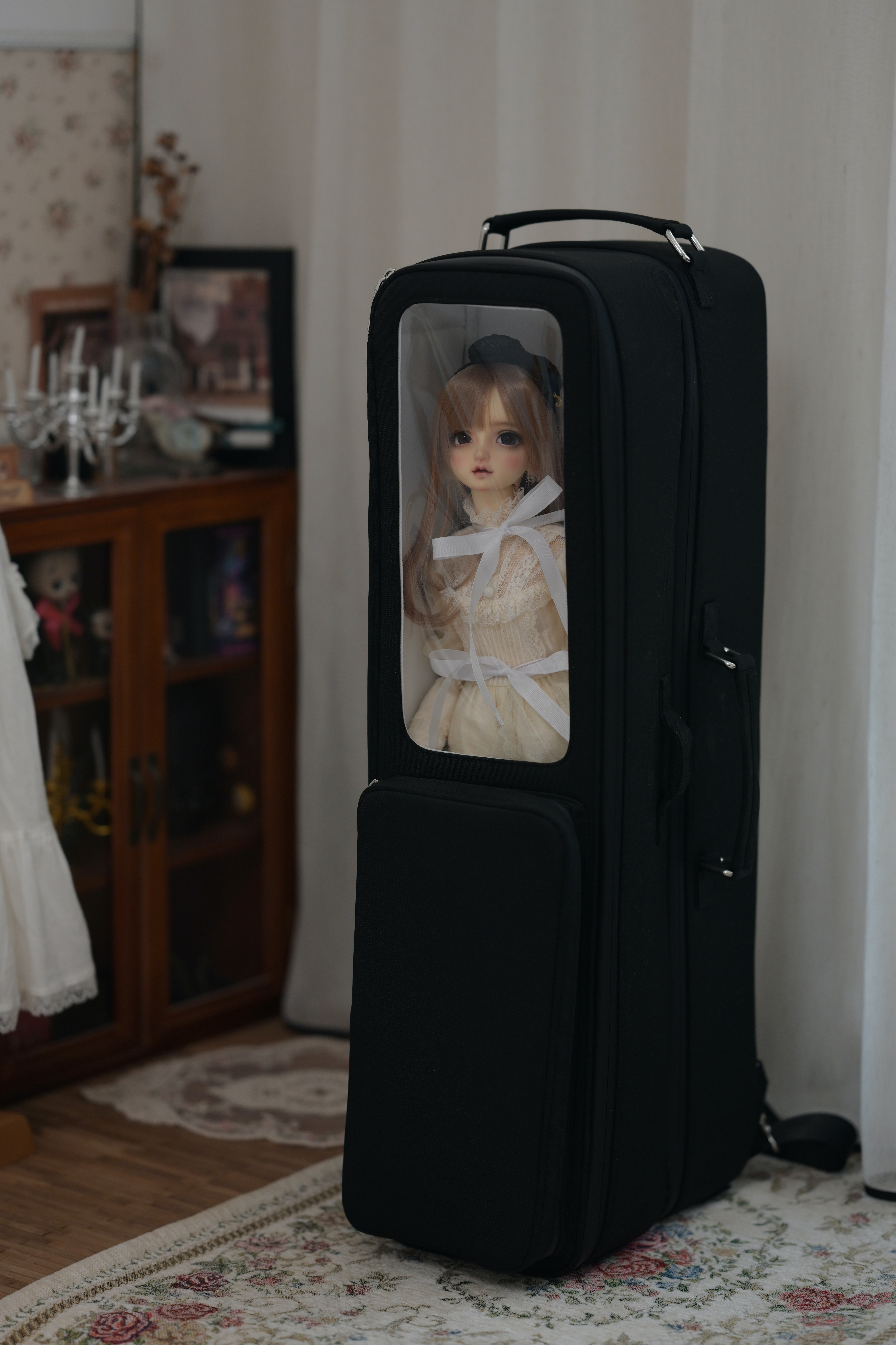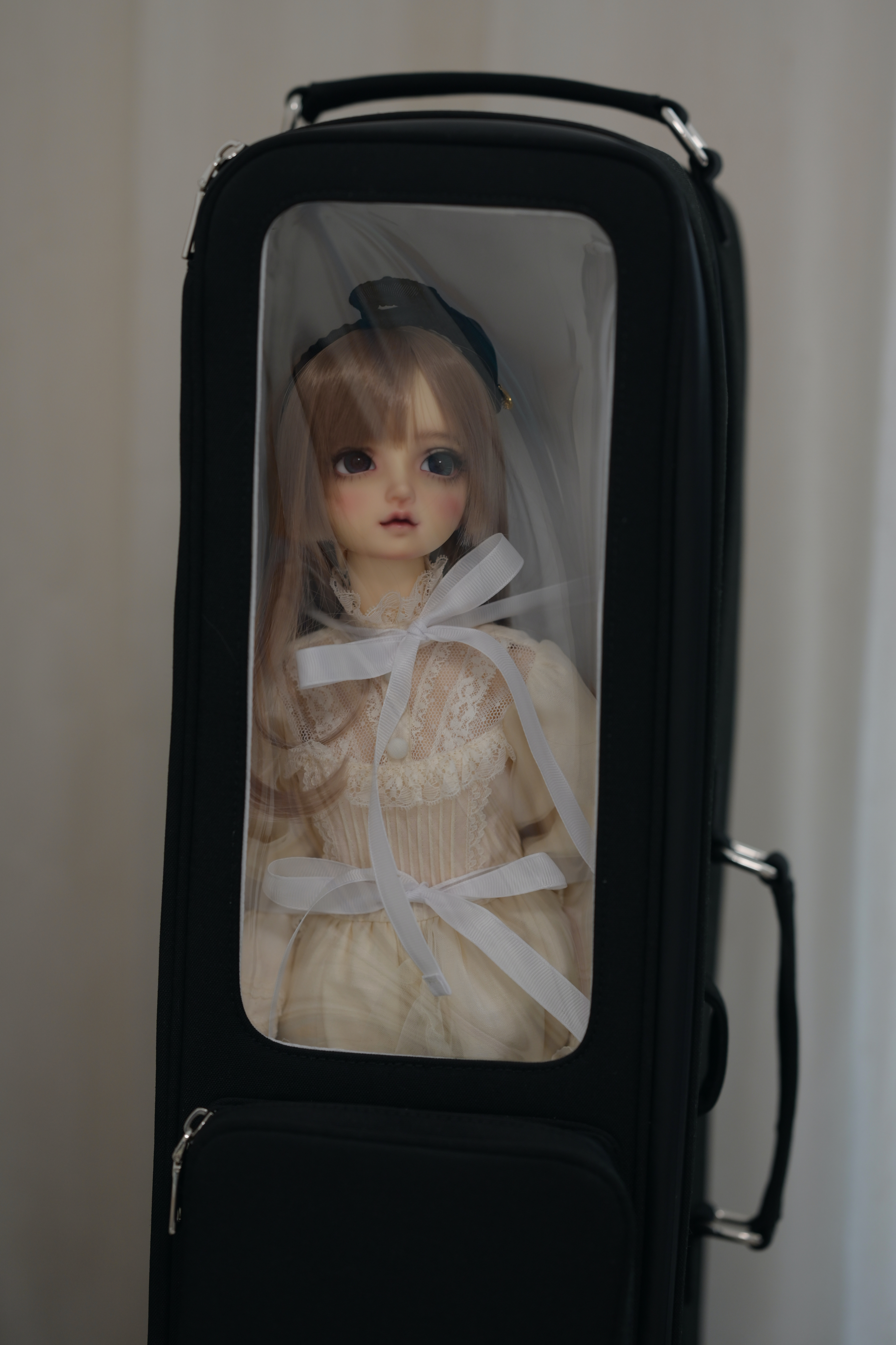 ドールは内側のリボンとベルトで固定していただけるため、持ち運びの際も安定感があります。