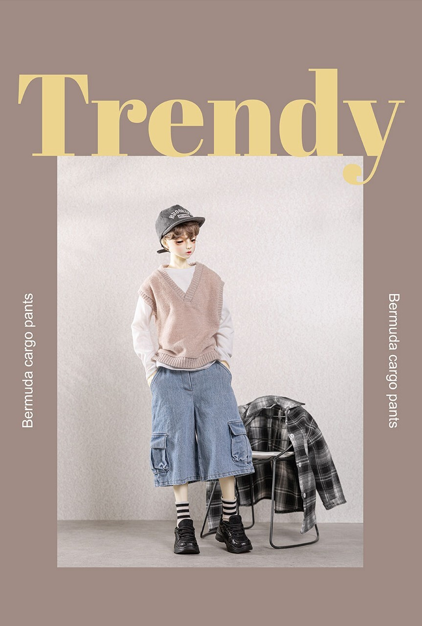 【70cm】 NINE9 STYLE / [SDB]Bermuda cargo pants (Ice jean)