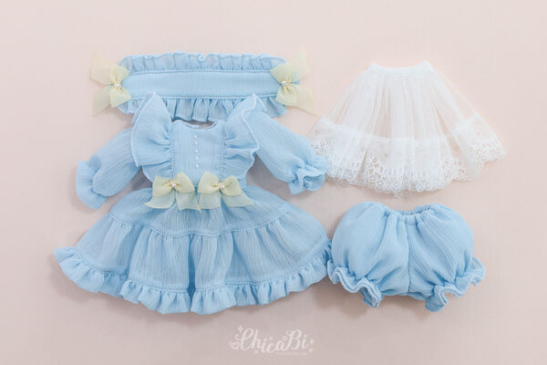 【30cm】 ChicaBi / [Bebe] Adorable chiffon dress (Sky blue)